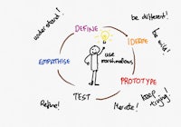 Now then, first off, some history... The process of Design Thinking was first developed at Stanford (and HPI) because the creators needed a way to show rather nerdy computer scientists (sorry folks, you are, truly) how to think about other people and their needs and wants. This way of thinking uses things like personas and ideation and actually (sorry my introverted friends) talking to and watching and (oh boy!) empathizing with people who do stuff, or have a problem or a need. It involves building early and failing often, and lots of lots of testing.